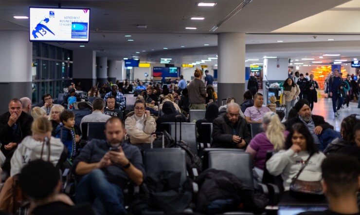 Travelers sit at a gate in Terminal 4 at John F. Kennedy International Airport in New York on Dec. 18.