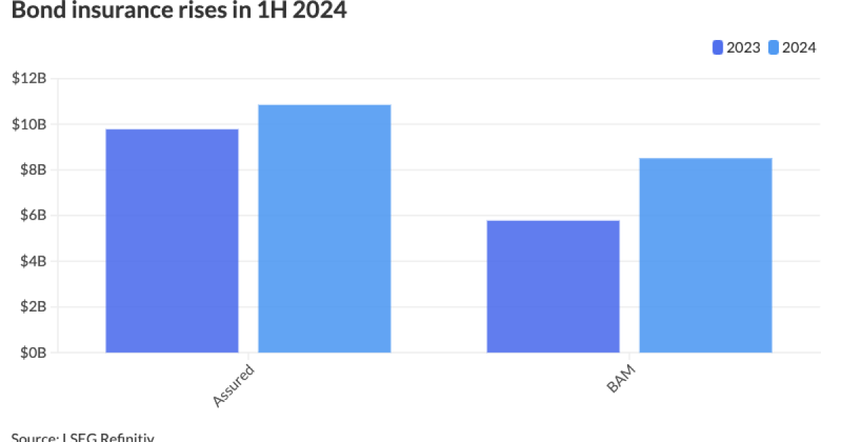 Municipal bond insurance grew 24.4% in the first half of the 2024 year-over-year, according to LSEG data.